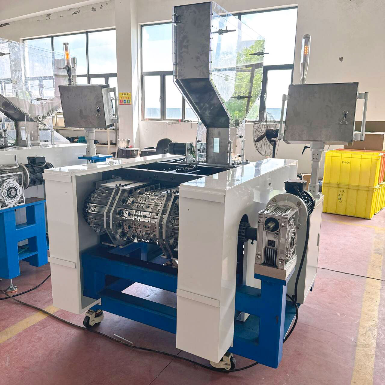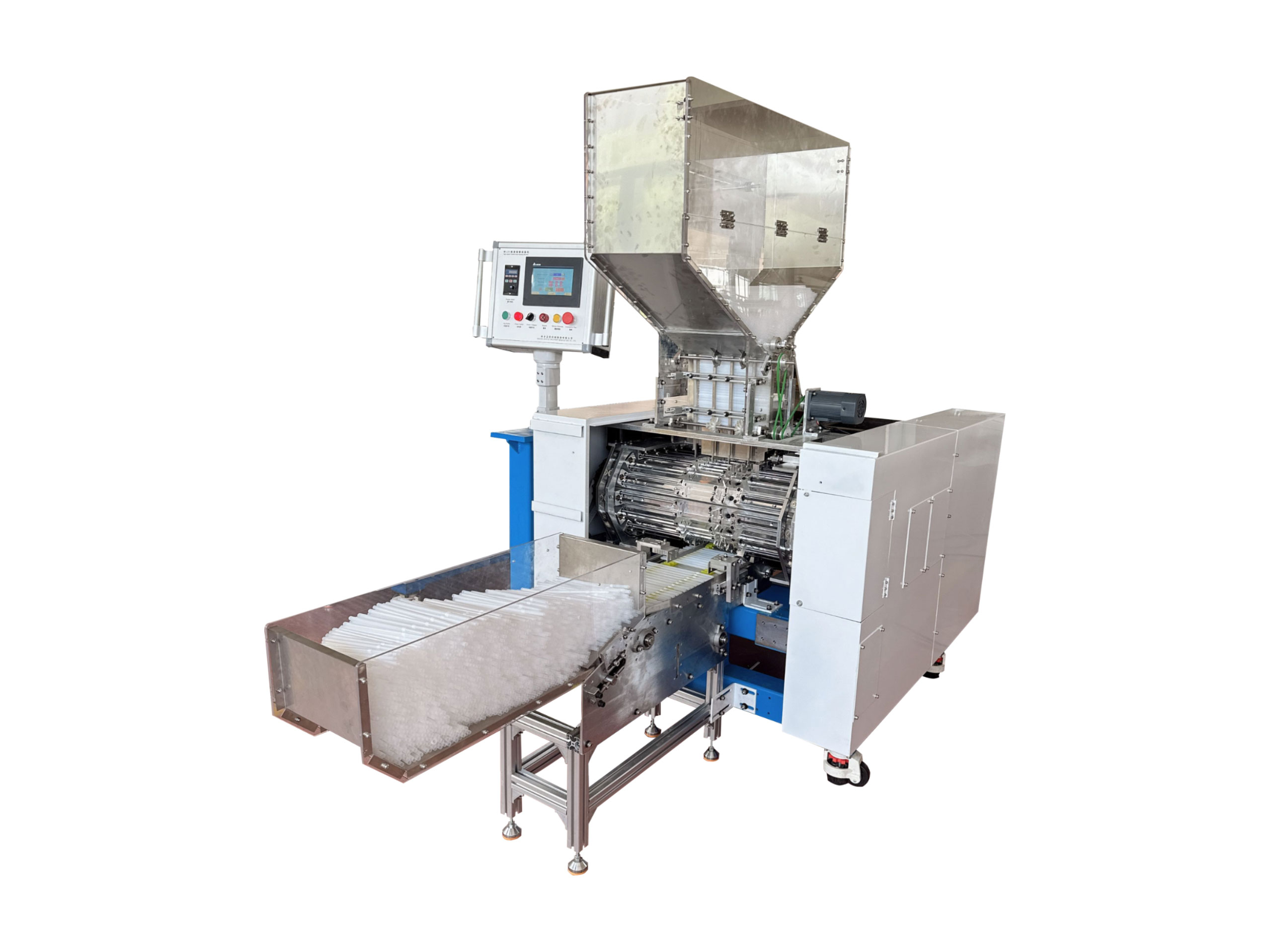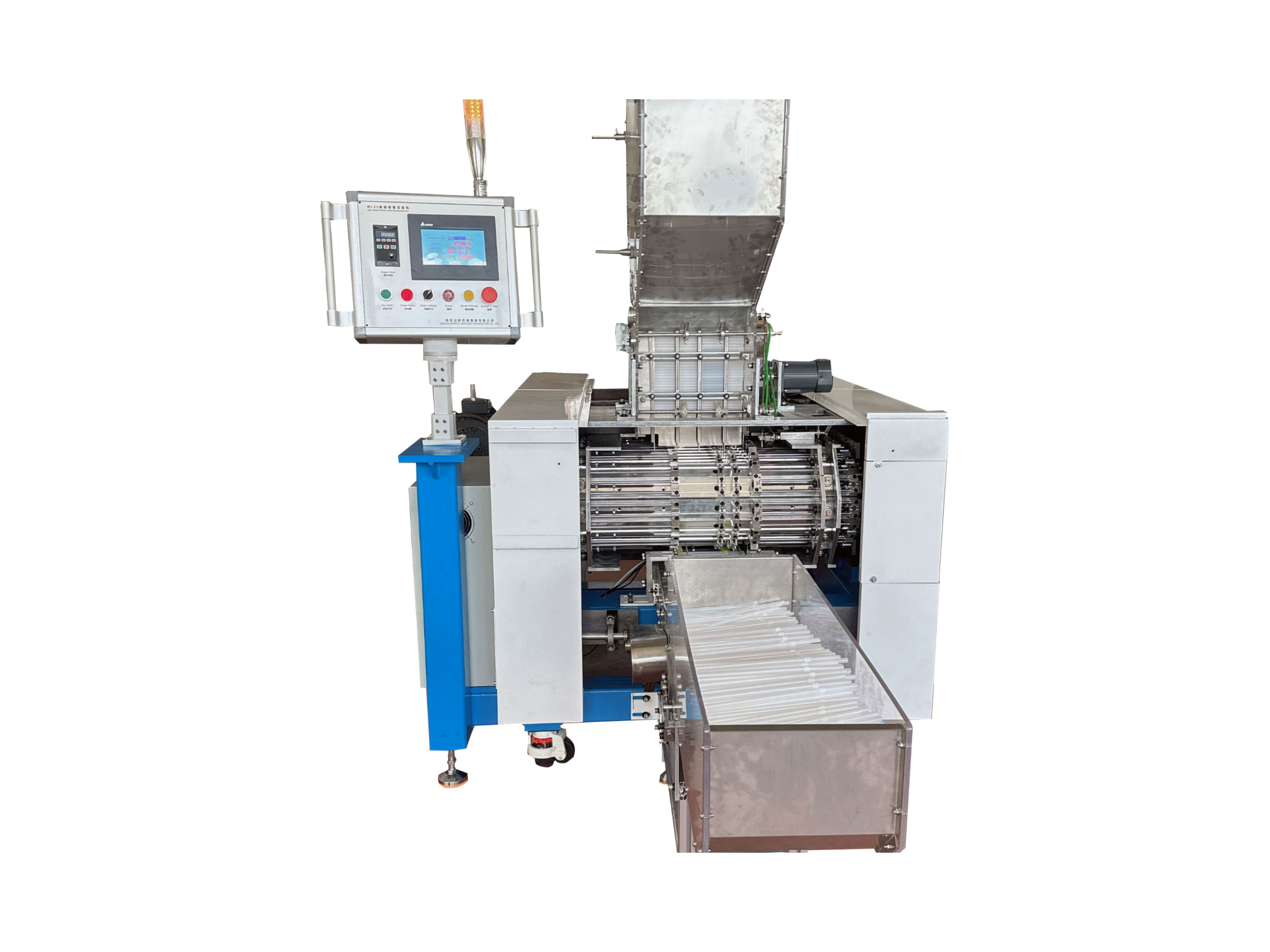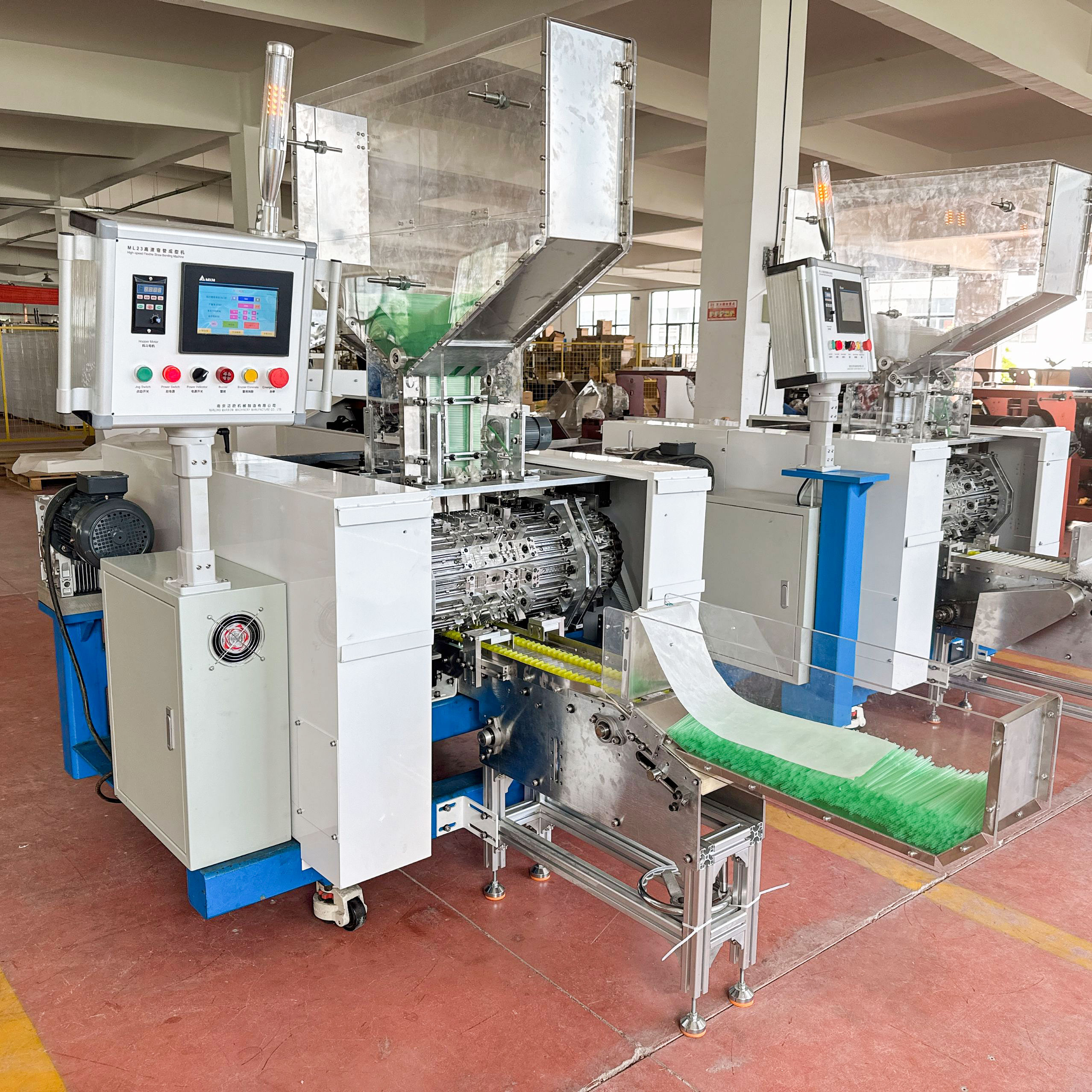 ML23系列全自動可彎吸管成形機是將直管坯加工成可彎吸管的一種自動化設(shè)備。 直管坯加入成形機上部料斗,經(jīng)45組成形牙針和1對成形牙輪連續(xù)動作后將彎管成品自動輸送出來,具有連續(xù)高效生產(chǎn)的能力。通過更換部分零件,可以實現(xiàn)多種孔徑規(guī)格彎管的生產(chǎn)。